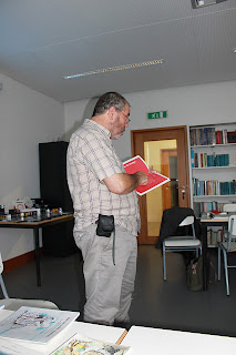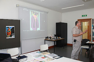 O nosso convidado mostrou as suas ilustrações, falou sobre o seu trabalho enquanto ilustrador, falou com os jovens presentes, curiosos em saber que trabalho desenvolver para ilustrar um livro.