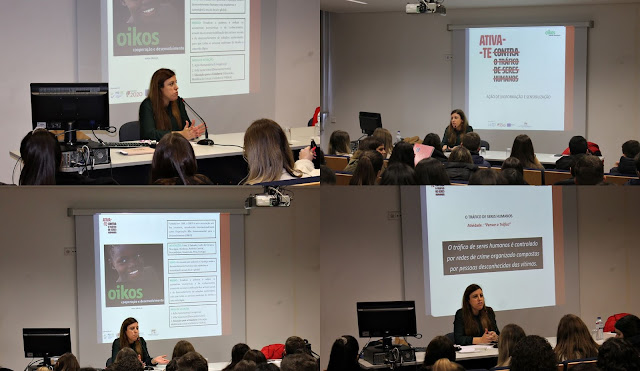 Recebemos, hoje, a primeira visita da representante da OIKOS, Dra Daniela, que veio falar sobre o Tráfico de seres humanos, às turmas do 12º LH2, 12LH3 e 11CSE. A sua vinda deve-se ao envolvimento da escola no projeto com o mesmo tema e que tem como objetivo a realização de uma campanha de sensibilização por parte dos nossos jovens (orientados pelas professoras Luísa Marques, Mª da Conceição Guerra, Eva Soares e Manuela Paredes). Um desafio importante, integrado num outro projeto da biblioteca escolar: "Os Direitos Humanos". Um agradecimento à OIKOS pela iniciativa e à Dra Daniela que irá cooperar connosco.